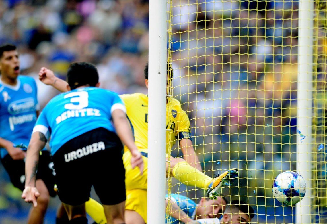 El primer gol fue a los 15 minutos del primer tiempo, en una jugada en la que el defensor visitante Cristian Lema quiso sacar el balón apremiado por Pablo Pérez, y lo terminó metiendo en el arco en complicidad con el arquero Lucas Acosta, mientras el colombiano Edwin Cardona, a los 42 de la misma etapa, marcó el segundo, de cabeza. Ya en el complemento, apareció el goleador Darío Benedetto, quien convirtió por duplicado, a los 17 y 32 minutos.