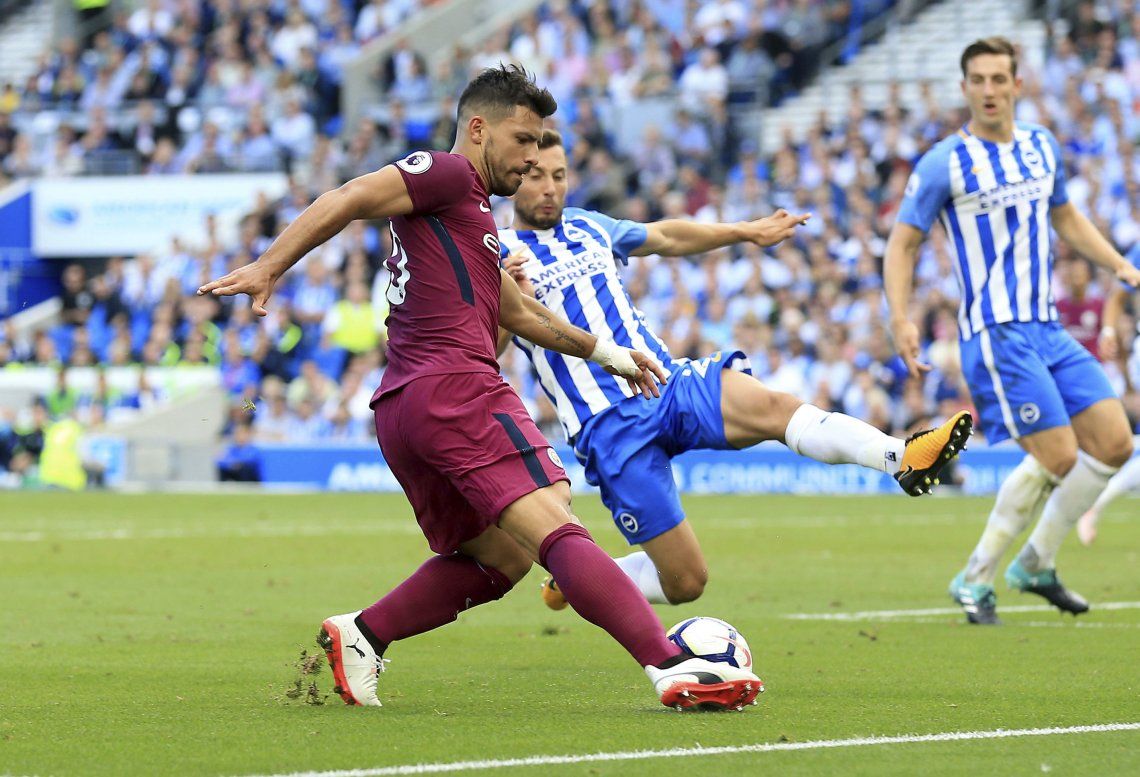 Agüero, ex Independiente y Atlético de Madrid de España, anotó su primer tanto en la competencia a los 25 minutos del segundo tiempo, mientras que el defensor Lewis Dunk aumentó el resultado con un gol en contra, a los 30m. de la misma etapa.