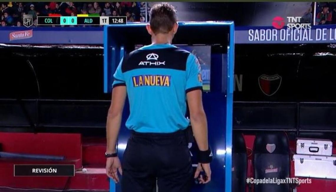 La observó algunos minutos, por varios ángulos, para determinar la intención del futbolista de Colón. Después de revisarla, encaró para el campo de juego, se llevó el silbato a la boca y pitó penal para Aldosivi, que luego transformó por gol Martín Cauteruccio.