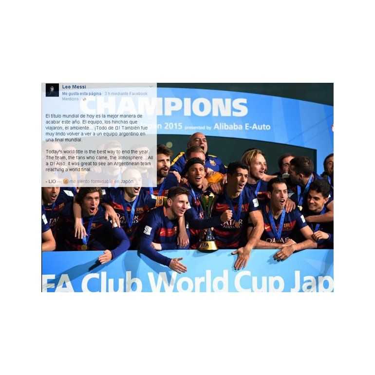 Este domingo por la mañana, Lionel Messi consiguió su trigésimo segundo título con el Barcelona, y agradeció el apoyo de los hinchas a través de su perfil en la red social Facebook.
