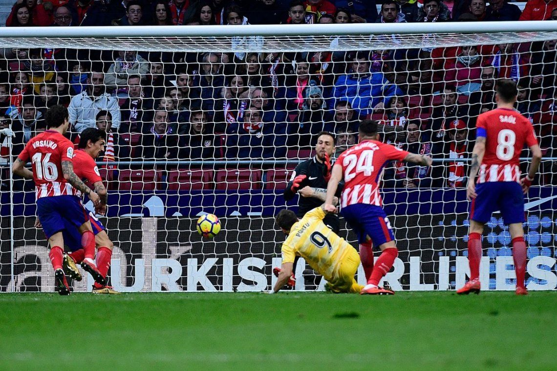 En el partido de este sábado, el Atlético se adelantó en el 34 cuando Diego Costa dejó de cabeza un balón muerto en el área, para que su compañero Antoine Griezmann la empujara al arco vacío.