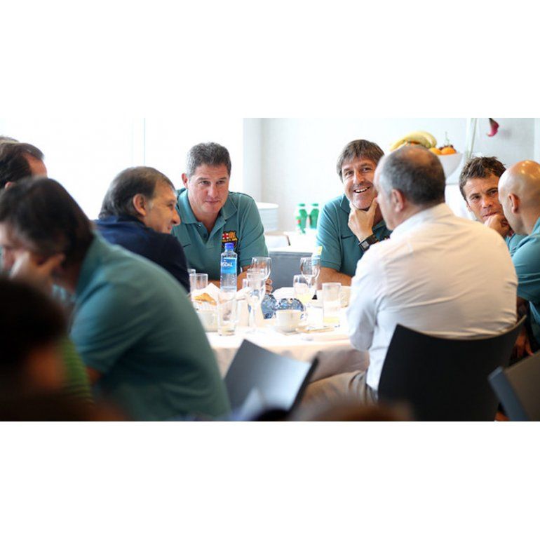 Una vez hechas las presentaciones, "el Tata" se sentó a la mesa con el resto de miembros del staff, donde también estaba el Director del Área de Fútbol, Andoni Zubizarreta.