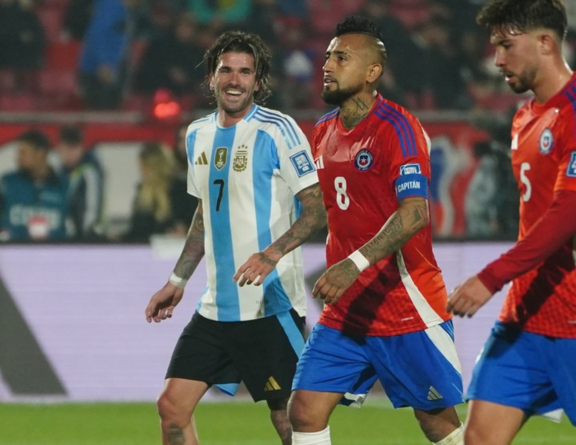Arturo Vidal fue consultado sobre un futbolista con el que se lleve mal y mencionó a Rodrigo De Paul después del cruce que tuvieron en el último enfrentamiento de Argentina y Chile. Un duelo correspondiente a las Eliminatorias del Mundial 2026, donde el equipo de Lionel Scaloni se impuso 1 a 0 de visitante y la historia terminó con la Roja sin poder clasificar a la Copa del Mundo, como ocurrió para las citas de 2018 y 2022.