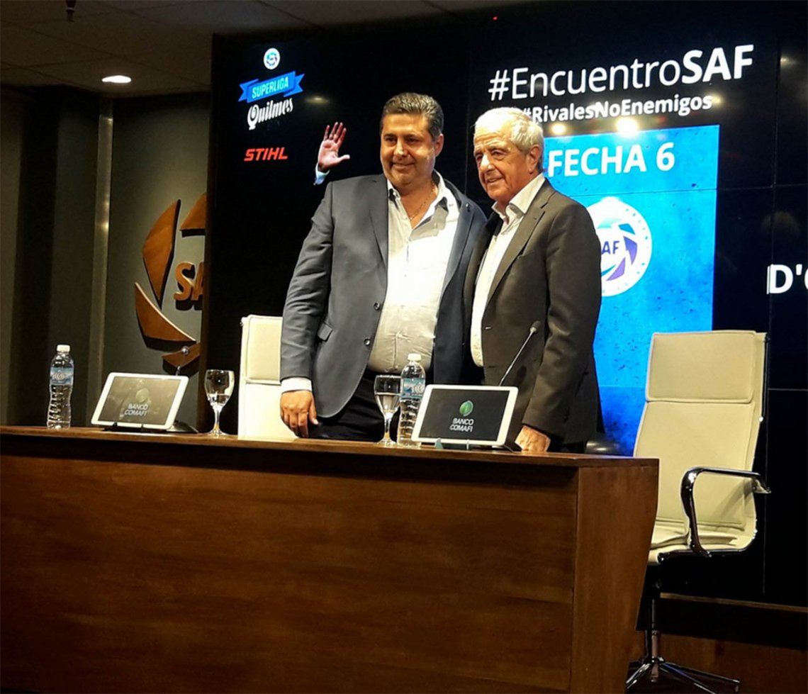 Pese a la camaradería, ninguno de los protagonistas se prestaron a una conferencia. Gambetearon las preguntas. Aceptaron la idea de la Superliga, pero sin disparadores de los periodistas, de esos que le dan pie sobretodo al Tano para poner en su voz la chicana que el hincha suele tener a mano.