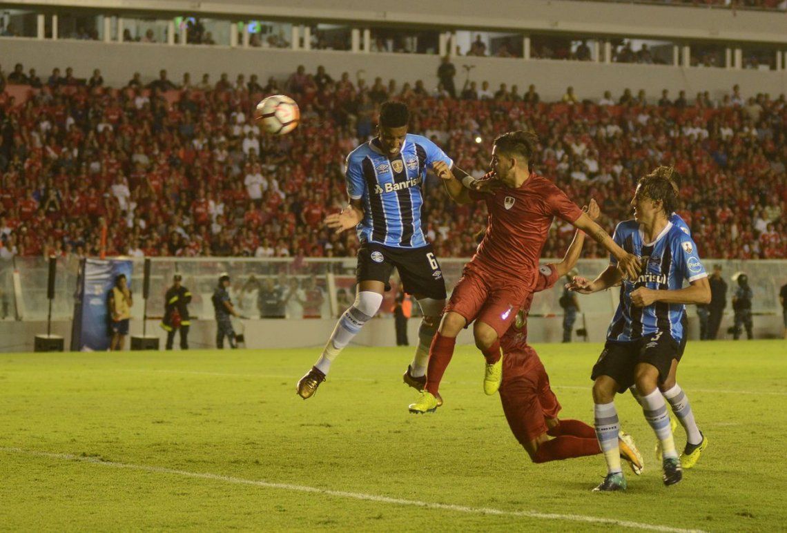 Marcelo Grohe (5) tuvo cierta responsabilidad en el gol de Independiente. Una pelota larga, apenas desviada por Cortez.