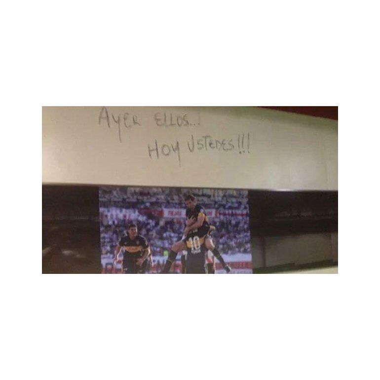 Durante la madrugada y buena parte de la mañana circularon fotos en los foros de Internet que nuclean las opiniones de buena parte de los hinchas de River con la evidencia del paso de los jugadores de Boca por el Monumental. Imágenes del vestuario visitante, con fotos y pintadas en las paredes.