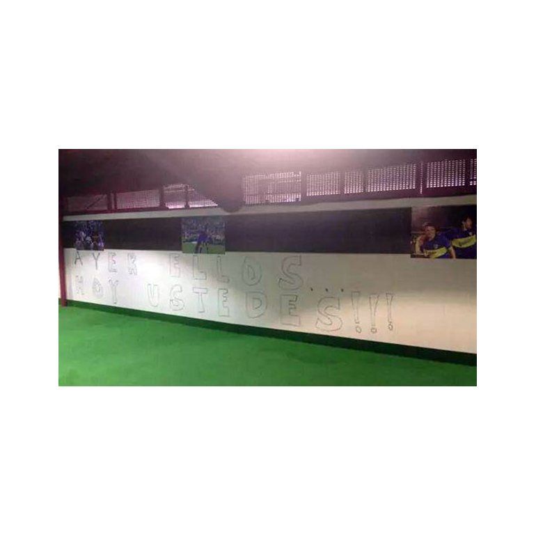 El túnel de salida a la cancha también tuvo otra leyenda, aunque pegada: "Boca, Boca, Boca; huevo, huevo, huevo", en el mismo soporte también se leyó "El talento depende de la inspiración, pero el esfuerzo, de cada uno de ustedes", todo en letras amarillas sobre fondo azul.