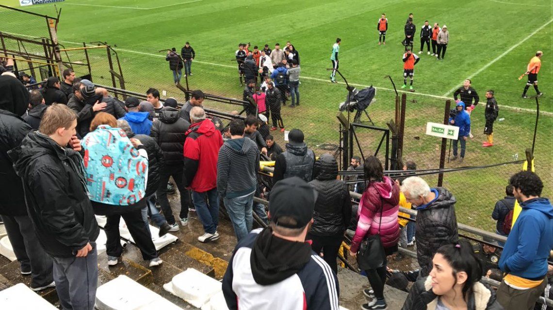 Cuando ocurrió este lamentable episodio, sólo restaba un minuto para que se cumpliera el tiempo reglamentario y Estudiantes necesitaba dos goles para evitar la eliminación, de manera que, una vez que se confirmó la decisión del árbitro Lucas Di Bastiano de dar por finalizado el partido, los jugadores locales celebraron el pase a la final con su gente.