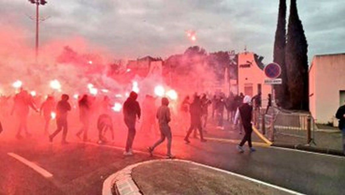 La Policía indicó en su cuenta de Twitter que 300 aficionados atacaron violentamente a los agentes que se habían desplegado para proteger el complejo de La Commanderie.
