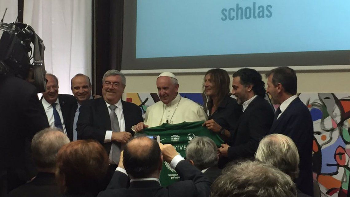 El papa Francisco inauguró este viernes la sede italiana de la Fundación Pontificia Scholas Occurrentes y tuvo tiempo, futbolero como es, para tener un divertido cruce con el ex futbolista Claudio Paul Cannigia.