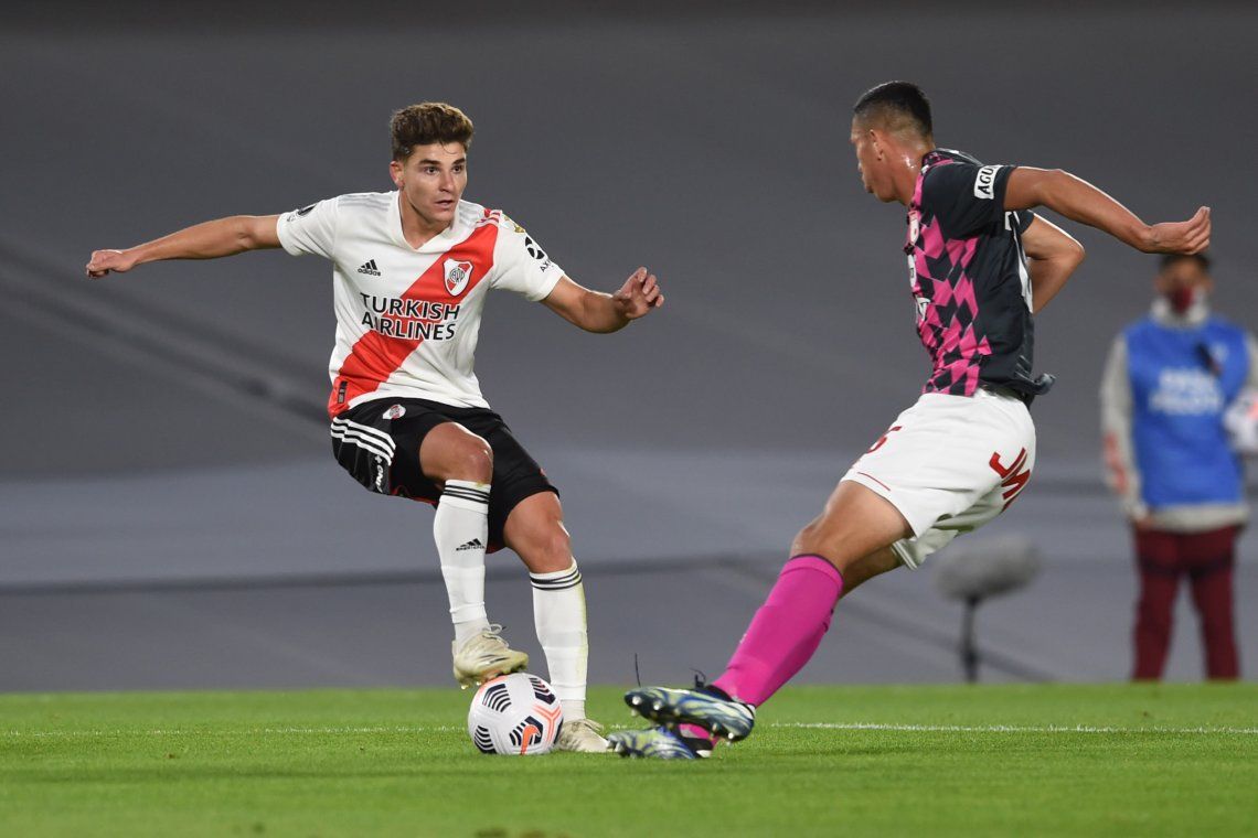 Fabrizio Angileri, a los 3 minutos de la etapa inicial, y Julián Álvarez, dos minutos más tarde, le dieron la victoria al conjunto millonario, que cerrará su participación en la fase inicial recibiendo a Fluminense el próximo martes.