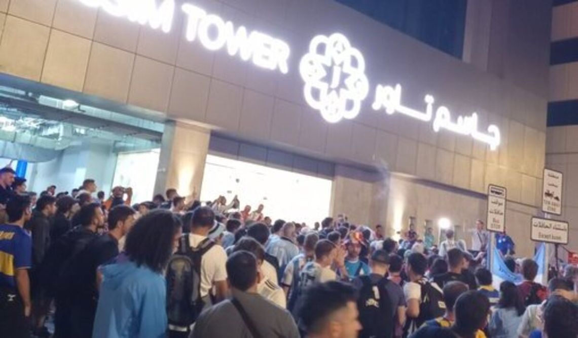 Unos 400 hinchas argentinos reclamaron en el ingreso del hotel Jassim Tower, en el centro de la capital qatarí, la disponibilidad de entradas a precios oficiales para poder ingresar al estadio Lusail en la gran definición del Mundial.