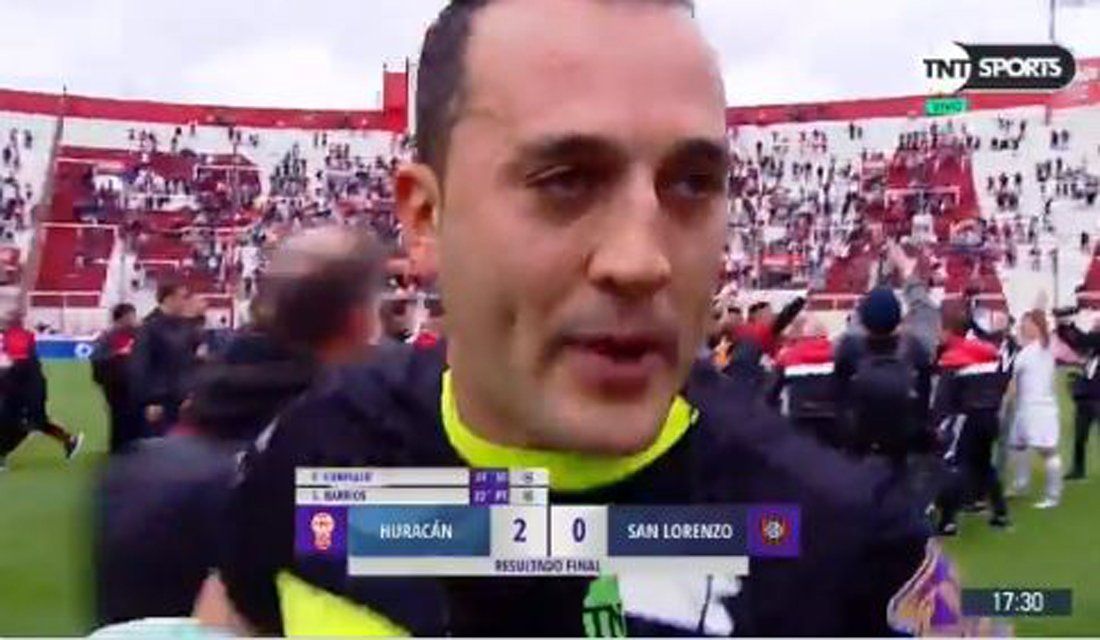 Así fue el diálogo que mantuvo Fernando Espinoza con un periodista al finalizar el partido. Sin mencionarlo, aunque con una acusación directa en simultáneo, el árbitro aludió a Alejandro Nadur, presidente de Huracán, a quien señaló por una presunta apretada.