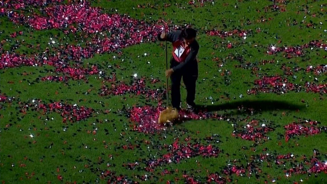 Facundo Tello, árbitro del cruce por la sexta fecha de la Superliga, aventuró que el cotillón impediría el normal desarrollo del partido y ordenó limpiar el terreno de juego.