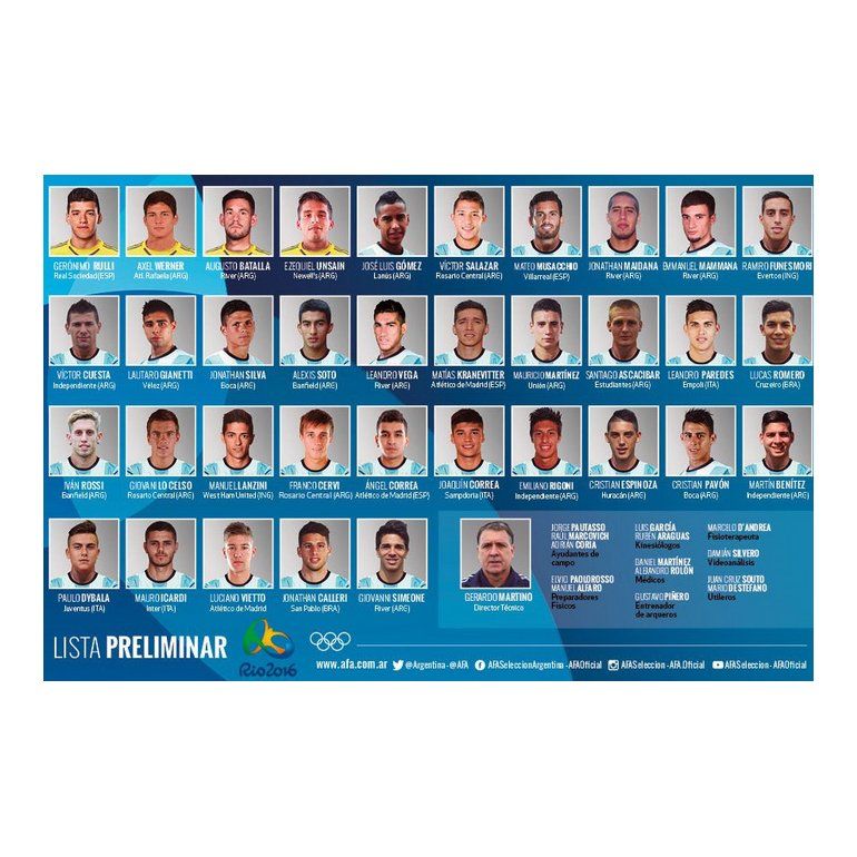 Gerardo Martino presentó la lista preliminar de futbolistas de la Selección argentina que participará en los Juegos Olímpicos de Río de Janeiro en agosto.