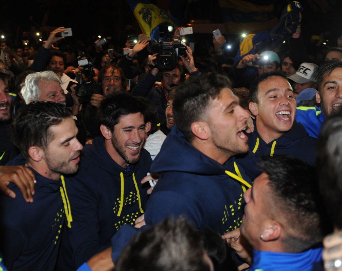 Los futbolistas ’xeneizes’ estallaron de alegría en el hotel donde se encuentran en Bahía Blanca en la previa del partido ante Olimpo y le dedicaron la consagración a su clásico rival, River Plate.