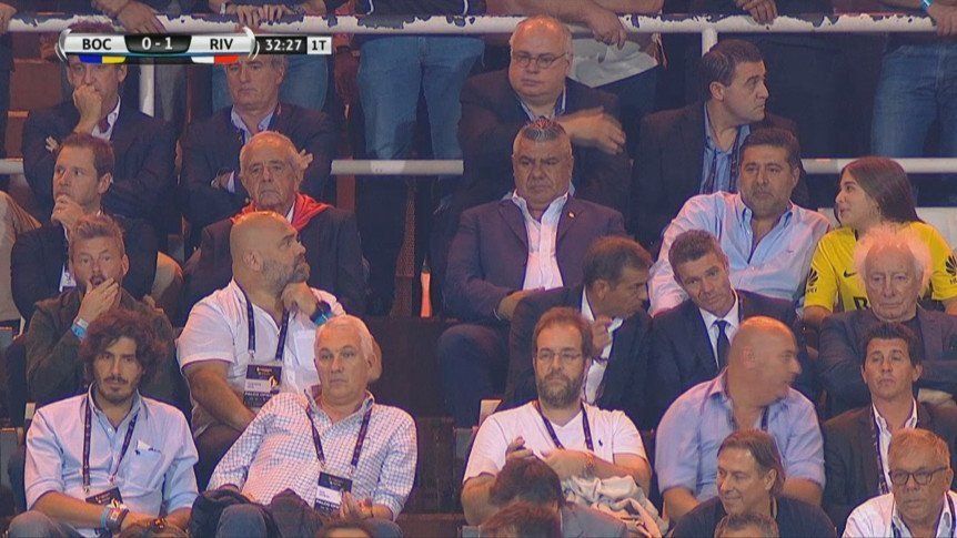 Se notó que no les nació. Rodolfo D'Onofrio y Daniel Angelici compartieron platea durante el partido de la Supercopa en Mendoza, pero no se ubicaron juntos. En medio de los presidentes del Millonario y el Xeneize se ubicó el titular de la AFA, Claudio Tapia.