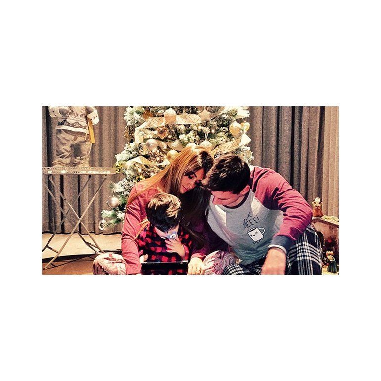 Antonella Rocuzzo subió a Instagram una foto de la familia con el arbol de navidad de fondo. En la misma se puede ver al diez junto a Thiago.