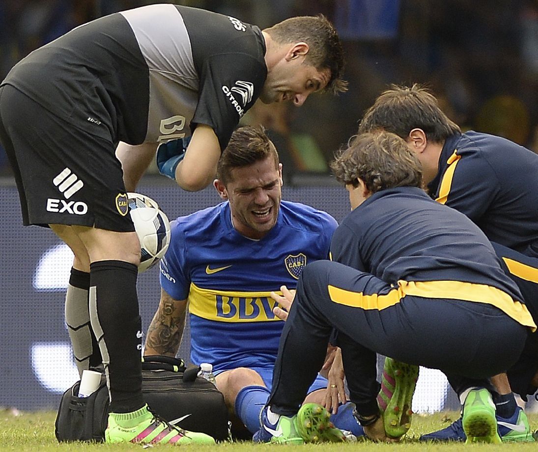 La primera de ellas fue el 13 de setiembre de 2015, cuando jugando contra River, en el Monumental, antes del minuto de juego y sin golpe alguno de un adversario, sufrió la rotura del Tendón de Aquiles de su pierna izquierda.