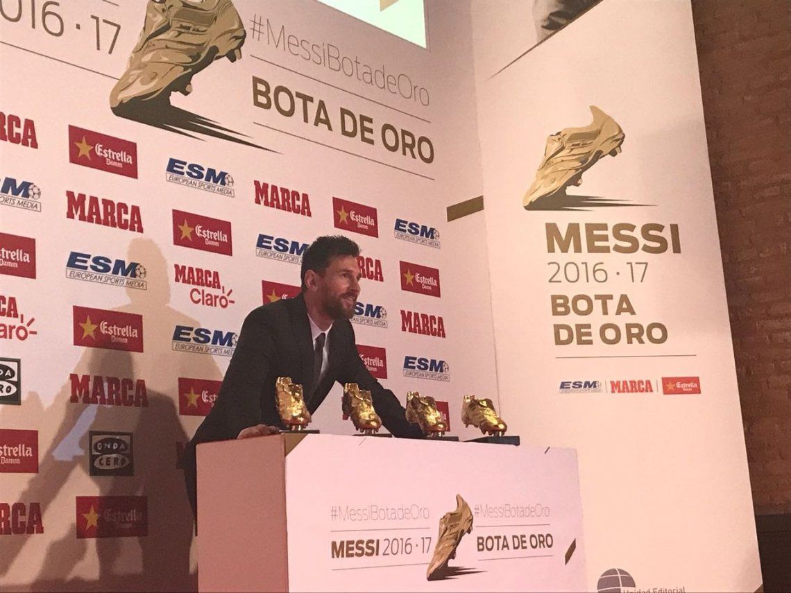 Lionel Messi fue premiado este viernes con la Bota de Oro por haber sido el máximo anotador de la temporada 2016/2017 en todas las ligas de Europa, un trofeo que ya había recibido en tres oportunidades a lo largo de su carrera.