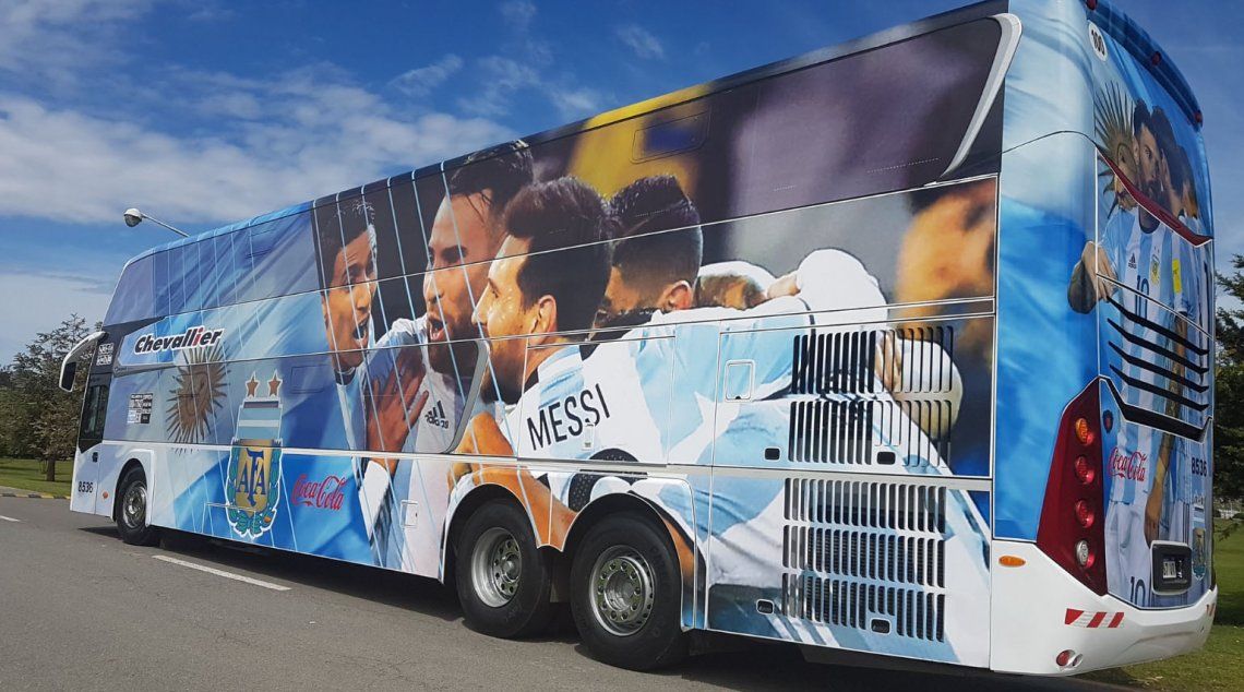 A través de su cuenta de Twitter, en las últimas horas la cuenta @Argentina reveló la imagen del colectivo completamente ploteado para hacerle un mimo más al equipo de Jorge Sampaoli. La cara de Messi en primer plano, un abrazo y un mensaje #YoAmoAmiSeleccion.