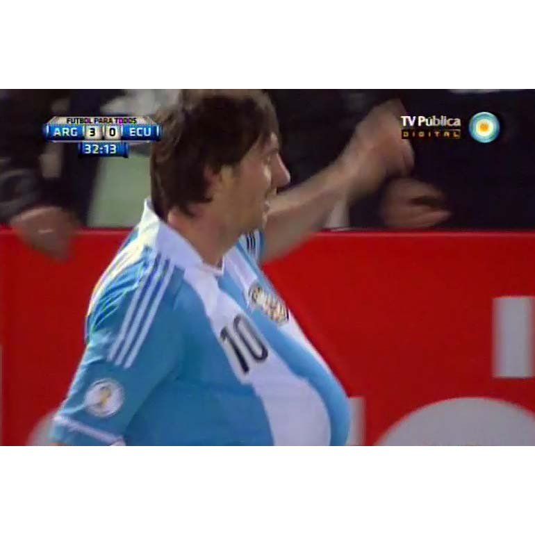 La estrella y figura de la Selección convirtió el tercer tanto del equipo de Sabella en la goleada ante Ecuador. En su festejo, la "Pulga" se metió la pelota debajo de la camiseta en alusión al bebé que está esperando junto a su novia Antonella.