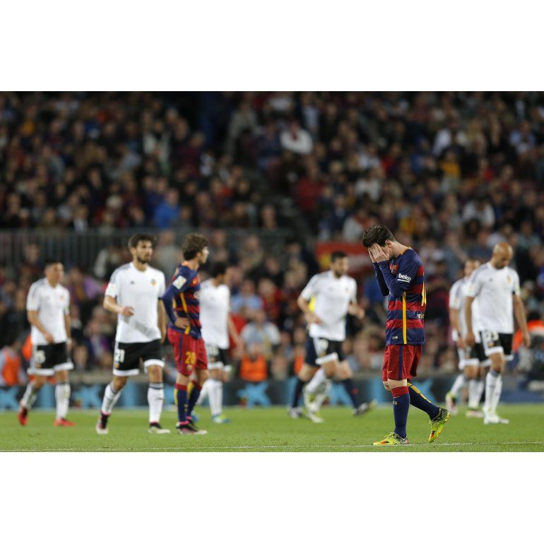 Barcelona fue amplio dominador pero en dos llegadas Valencia, quien tuvo al mendocino Enzo Pérez desde el inicio, se puso 2-0 a través de Ivan Rakitic, en contra, y Santi Mina. En la segunda parte, Messi, de flojo partido, descontó y llegó a su postergado gol número 500, pero no les alcanzó a los dirigidos por Luis Enrique.