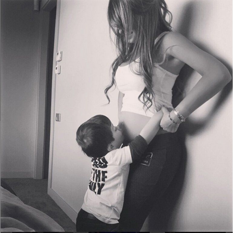 El crack lo confirmó en su cuenta de Instagram, con una tierna foto que muestra a su mujer Antonella con una incipiente pancita y a su hijo, Thiago, besándola. Una ternura... Messi Thiago Antonella.jpg Embed