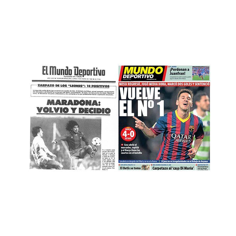 "En un encuentro lleno de expectación por su vuelta, el crack argentino, sobre el que apuntaban todas las miradas, fue protagonista marcando dos goles", comentaba entonces Mundo Deportivo, que hoy desempolva el archivo y da a conocer esta –otra- increíble similitud entre los dos genios.