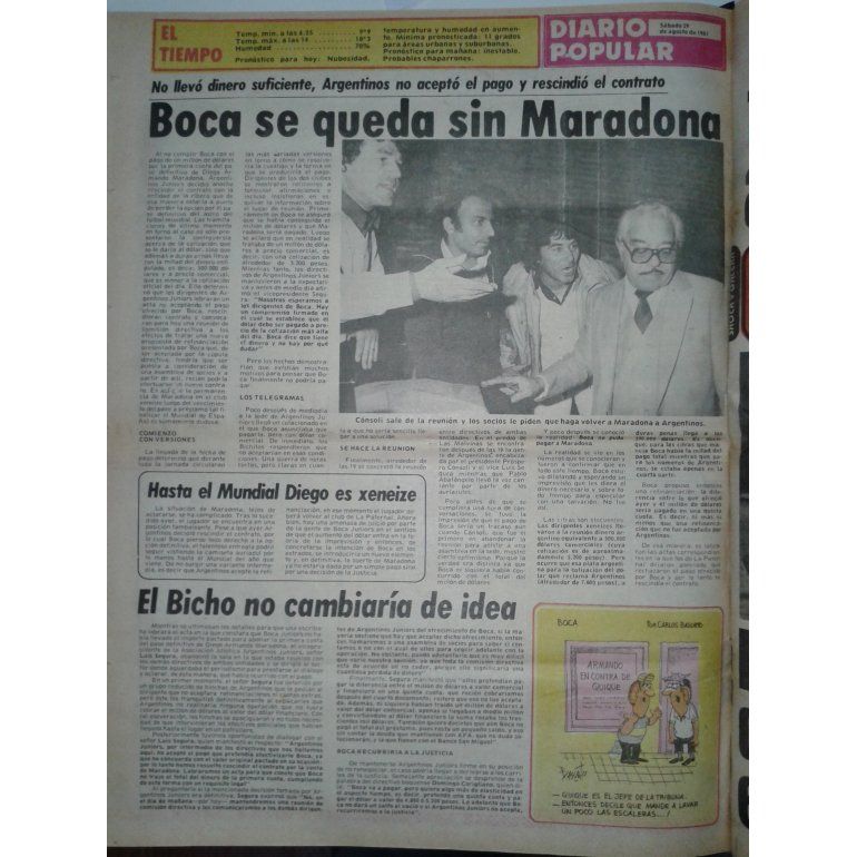 "Boca se queda sin Maradona", tituló este medio. "No llevó el dinero suficiente, Argentinos no aceptó el pago y rescindió el contrato".