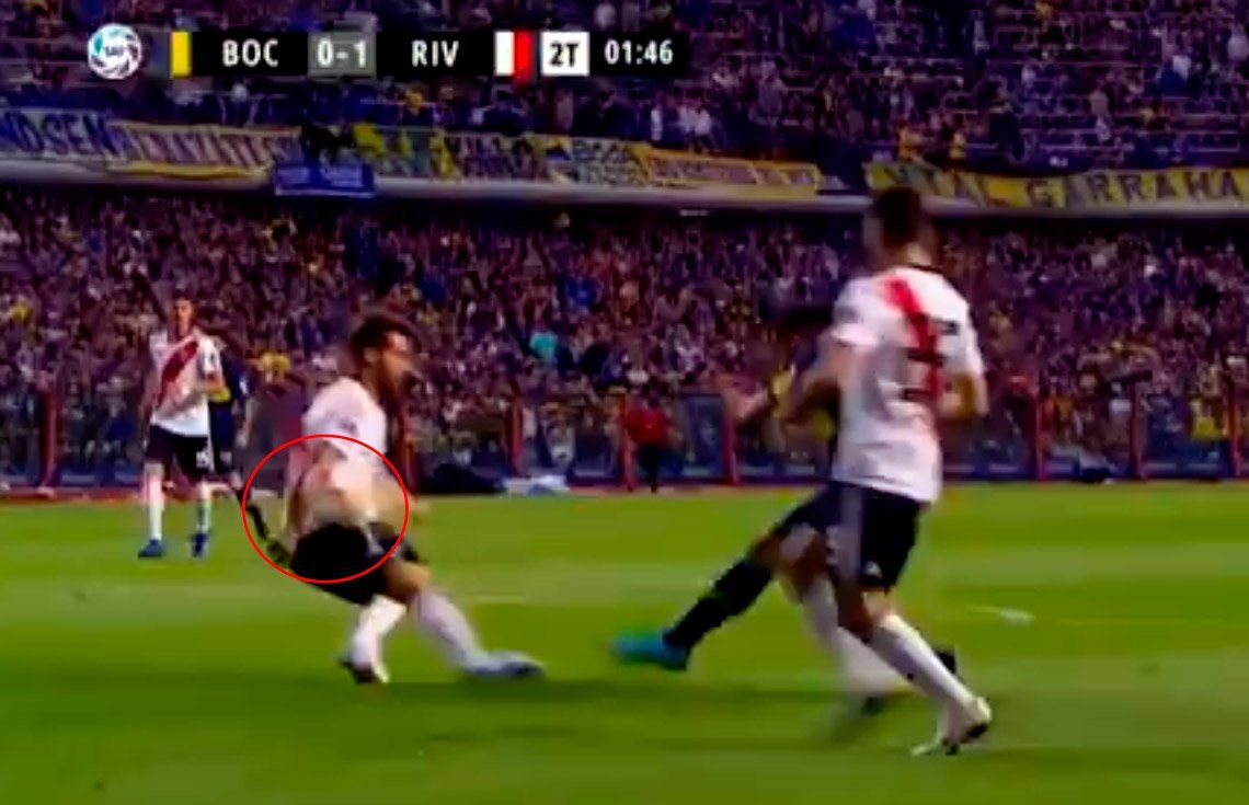 Una vez más la polémica se instaló en la Bombonera. En el área de River hubo tres jugadas muy complicadas para el árbitro y decidió no cobrar falta en ninguna, todas en el segundo tiempo.