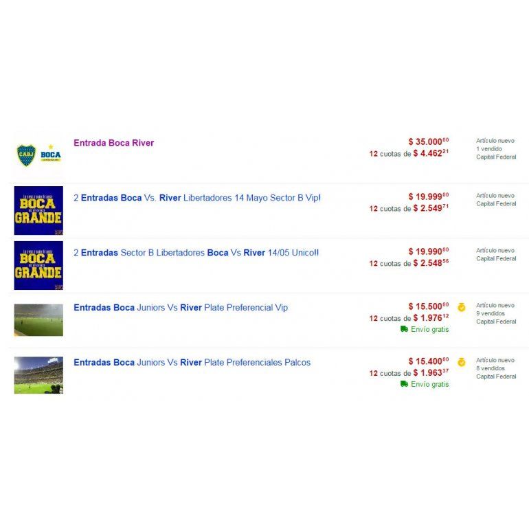 Por eso, en los sitios de internet más conocidos de compra y venta de artículos llegan a pedir hasta 35 mil pesos por una platea para el Superclásicocopero.