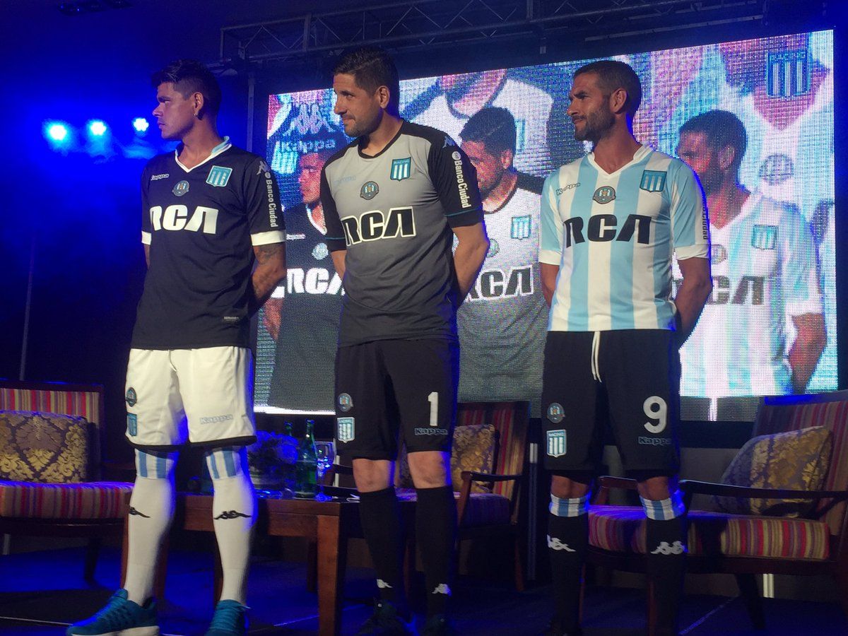Racing presentó este miércoles las nuevas camisetas fabricadas por la firma Kappa y que debutarán en el partido ante Gimnasia de este jueves por la "Copa Amistad" que se disputará en el Minella.