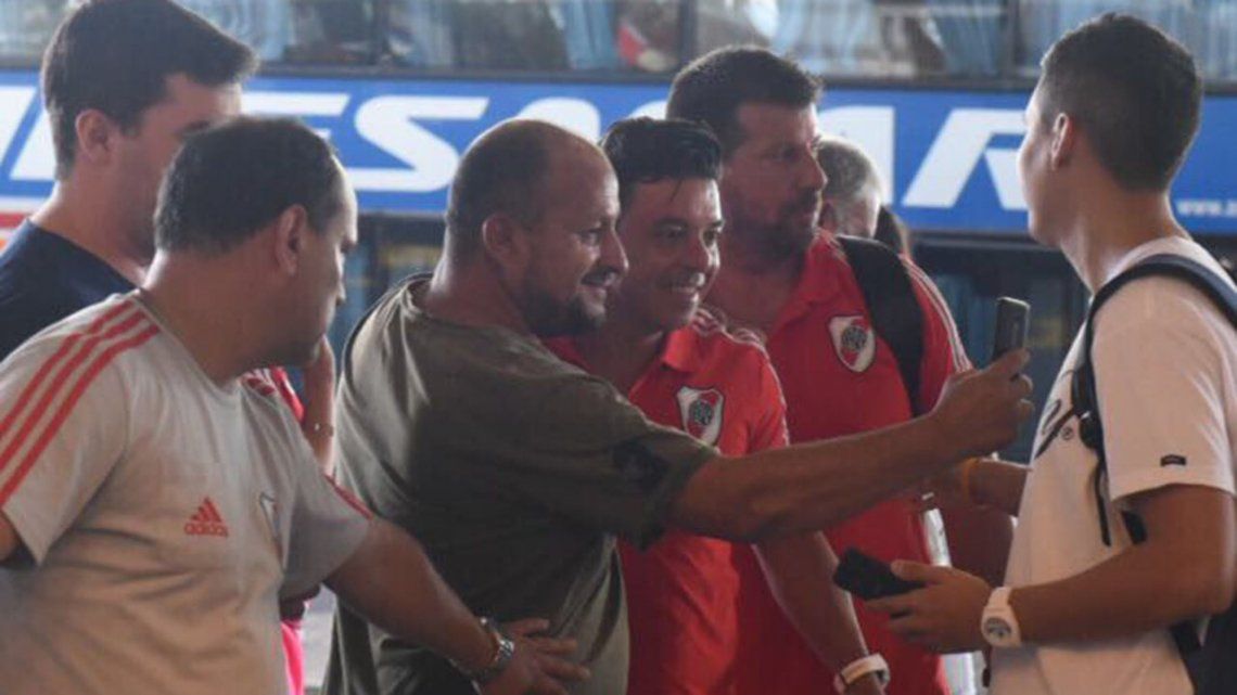La delegación que partió en vuelo charter, desde Aeroparque, alrededor de las 19.30, estuvo integrada por 21 jugadores elegidos por Marcelo Gallardo: Germán Lux, Franco Petroli, Franco Armani, Javier Pinola, Jonatan Maidana, Lucas Martínez Quarta, Milton Casco, Marcelo Saracchi, Gonzalo Montiel, Leonardo Ponzio, Iván Rossi, Ariel Rojas, Enzo Pérez, Ignacio Fernández, Gonzalo Martínez, Nicolás De La Cruz, Ignacio Scocco, Carlos Auzqui, Rafael Borré, Lucas Pratto y Benjamín Rollheiser.