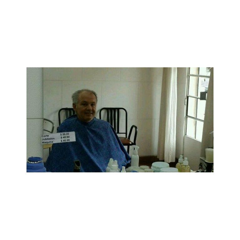 En la imagen se puede ver a "Pachorra" sentado frente a su peluquero, y se destaca la presencia de un cartelito que anuncia los precios del corte: $50, $40 para jubilados y $40 el corte con máquina.