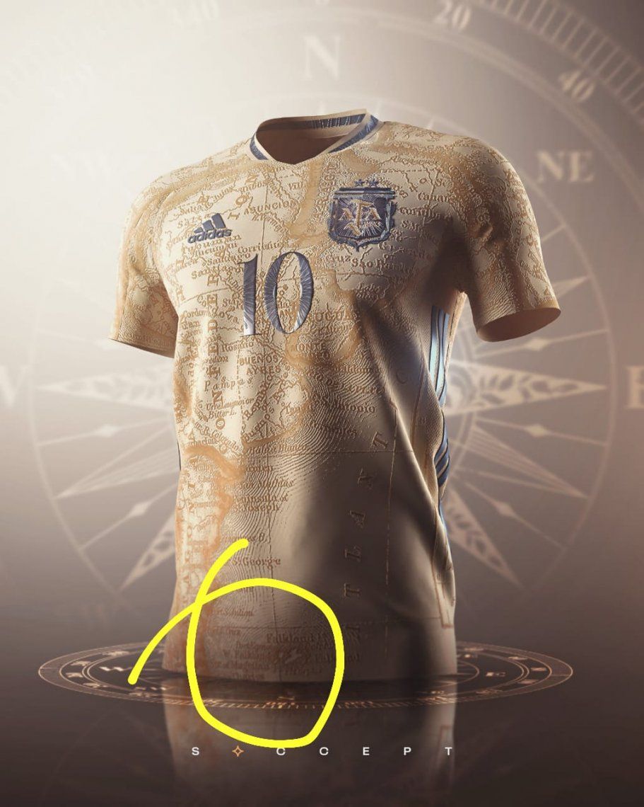 La firma que realizó un bosquejo para una futura camiseta de la selección argentina de fútbol cometió un error grosero en el modelo denominado "away", que sería para los partidos que juegue el representativo nacional en condición de visitante o simplemente el segundo juego de indumentaria del equipo.