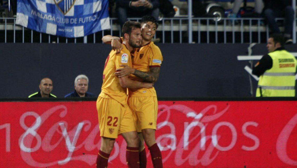 En el segundo tiempo, el Sevilla salió decidido a buscar los tres puntos, pero un pase en largo del Málaga dio lugar a error de Nico Pareja y Sandro y batió al arquero Sergio Rico con un disparo raso.