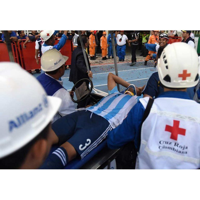 El defensor de River Plate dejó el campo de juego en camilla con un cuello ortopédico y fue trasladado de inmediato a la clínica Porto Azul en la zona norte de la ciudad de Barranquilla, donde se sometió a estudios que determinaron que la lesión no implicaba gravedad, por lo que se dispuso que el futbolista regresara junto al resto de la delegación argentina en un vuelo charter tras cenar en el hotel.