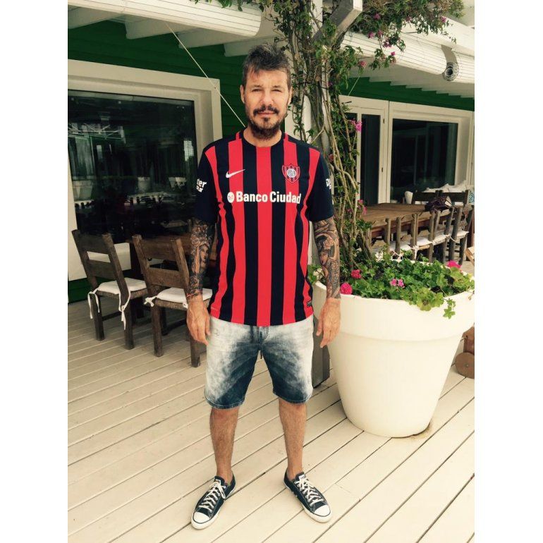 Marcelo Tinelli presentó en sociedad y junto a sus hijos menores la nueva camiseta de San Lorenzo.