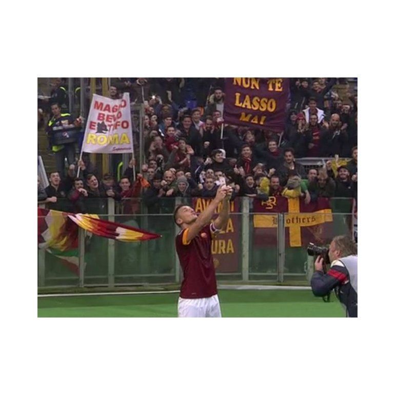 Francesco Totti es el máximo ídolo de la historia de la Roma, uno de los clubes más importantes de Italia. Y para agigantar el cariño de su público, hoy metió un doblete para igualar el clásico ante la Lazio, y por si fuera poco, se sacó una selfie tras su segundo tanto.