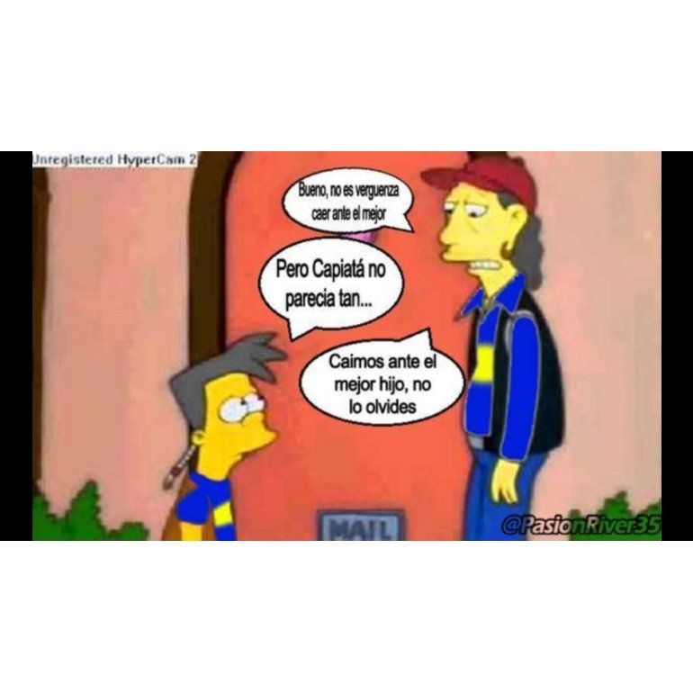 Tras la derrota que sufrió Boca Juniors en la noche del miércoles frente a Deportivo Capiatá en la Bombonera y con gol en contra de Magallán, los hinchas millonarios se cobraron la revancha de los "gastes" que sufrieron la semana pasada -por su eliminación en la Copa Argentina- y pasaron al ataque con una catarata de afiches, muchos de ellos con Los Simpson como protagonistas.