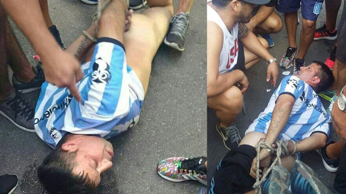 Algunas versiones dignas de crédito aseguraron haber visto cómo los barras desnudaban y vejaban al atacado en plena calle. El hecho ocurrió a unas dos cuadras del Cilindro, donde después de tirarlo al suelo y además de golpearlo, el agredido fue orinado e incluso le habrían introducido un arma en el orificio anal.