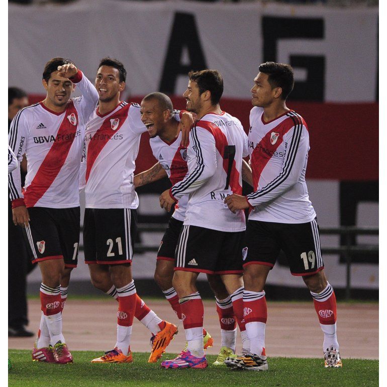 River: Marcelo Barovero; Gabriel Mercado, Jonatan Maidana, Gabriel Funes Mori, Leonel Vangioni; Carlos Sánchez, Matías Kranevitter, Ariel Rojas; Leonardo Pisculichi, Rodrigo Mora y Teófilo Gutiérrez. DT: Marcelo Gallardo.