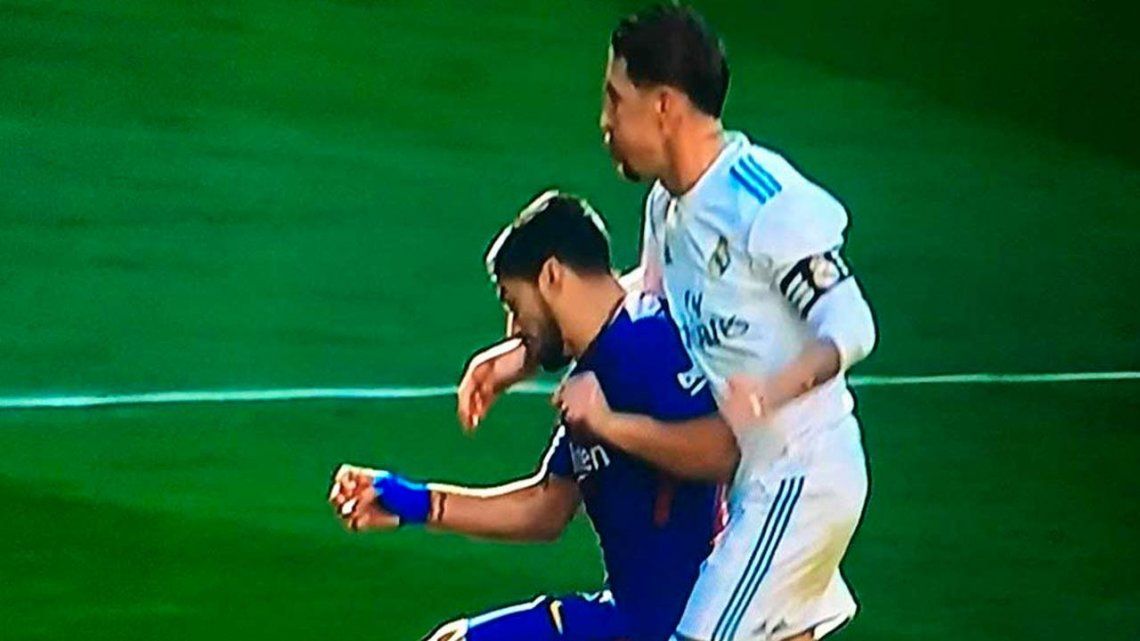 Ya con Lucho en el suelo, Ramos fue sancionado, pero tan sólo con una tarjeta amarilla.