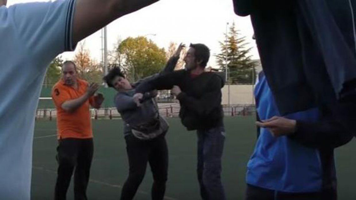 Inmediatamente, varios padres se entrelazaron en un feroz combate cuerpo a cuerpo hasta que llegó la policía al lugar para finalizar el conflicto.