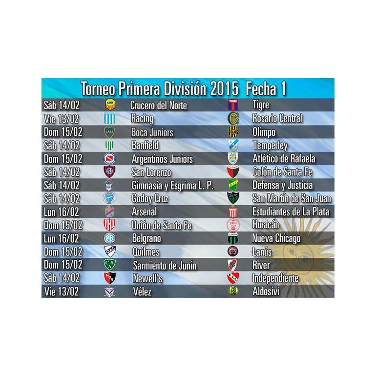 Los grandes quedaron distribuidos entre viernes, sábado y domingo. El primero en aparecer será Racing, el último campeón, cuando reciba a Rosario Central el viernes 13 de febrero. El sábado 14 saldrán a la cancha otros dos: San Lorenzo, local frente a Colón, e Independiente, visitante de Newell's. Mientras que River y Boca continuarán, como de costumbre, jugando los domingos: el "Millonario" en Junín ante Sarmiento y el "Xeneize", en "La Bombonera" frente a Olimpo.