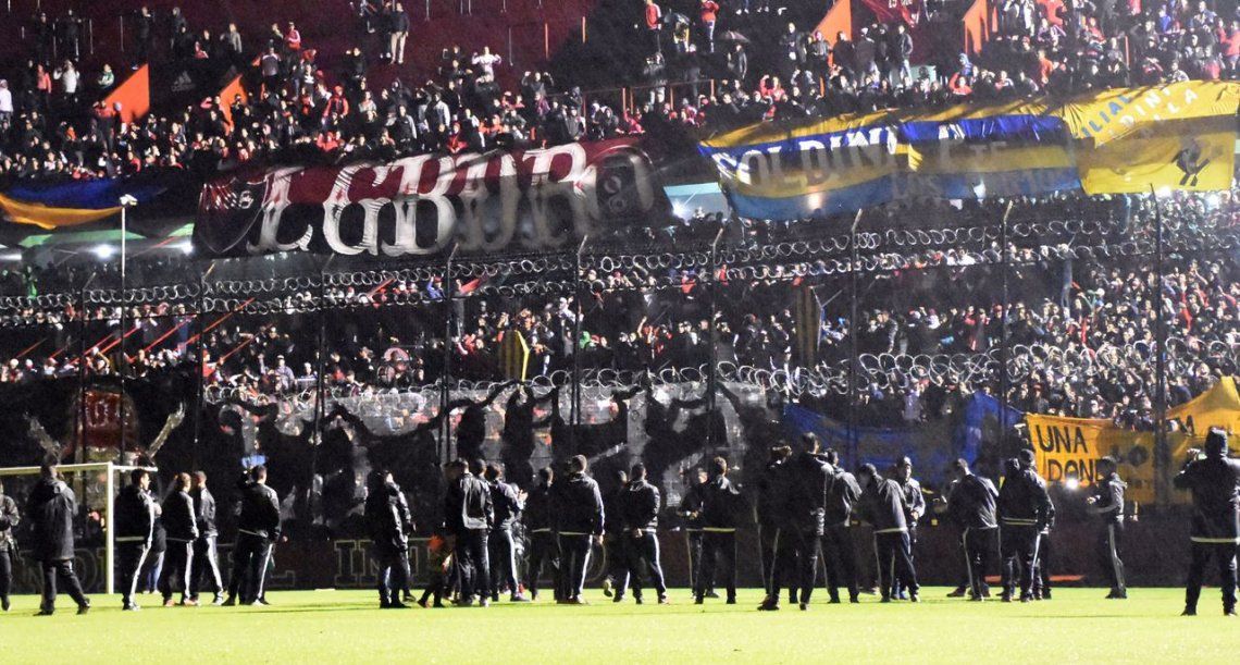 A pesar de los 120 efectivos de la policía provincial, dispuestos por el Ministerio de Seguridad santafesino, los barrabravas rojinegros ingresaron los féretros o ya los tenían en el estadio, en una incitación a la violencia.