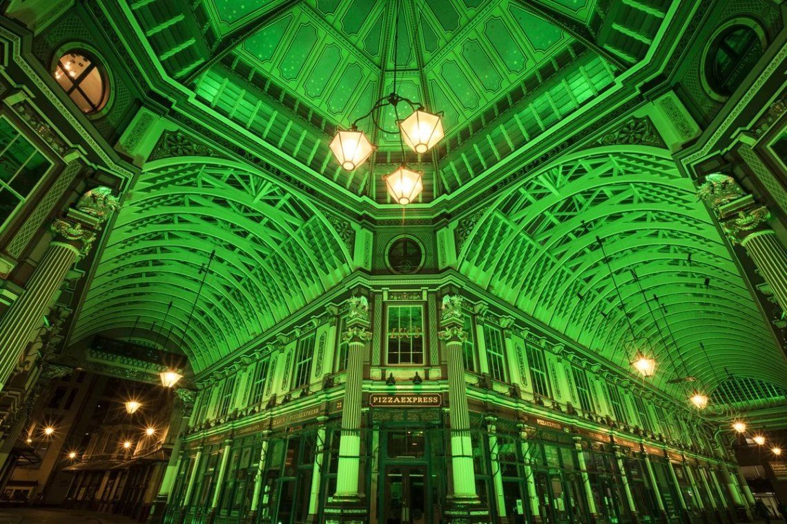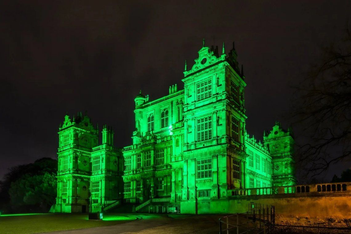 El templo budista Wat Arun (Templo del Amanecer) en Bangkok Puente Samuel Beckett, sobre el río Liffey en el centro de Dublín La Casa Blanca en Washington Museo Wollaton Hall en Inglaterra Mercado cubierto Leadenhall en Londres Chicago Riverwalk La Cueva de Gutman en Sigulda, Letonia Irlanda Irlanda Las mascotas oficiales del Regimiento de Infantería 69 de Combate, el 1er Batallón de la Guardia Nacional del Ejército de Nueva York