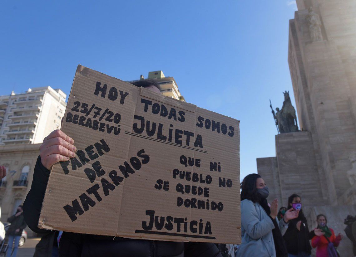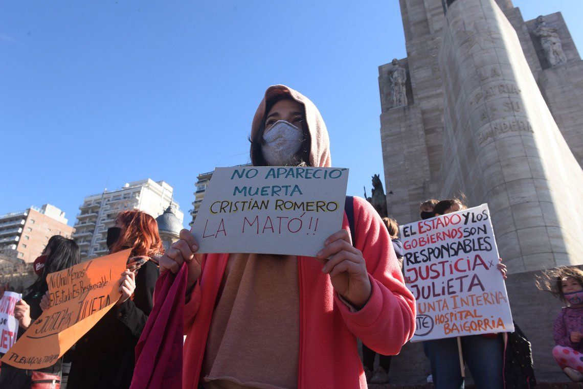 Unos 200 manifestantes se movilizaron hoy en Rosario para exigir justicia por el femicidio de Julieta Delpino, la joven de 19 años cuyo cuerpo fue hallado, en las últimas horas, en el interior de un pozo de una vivienda en la localidad santafesina de Berabevú