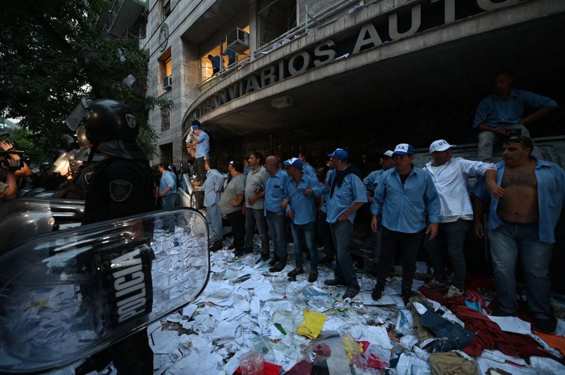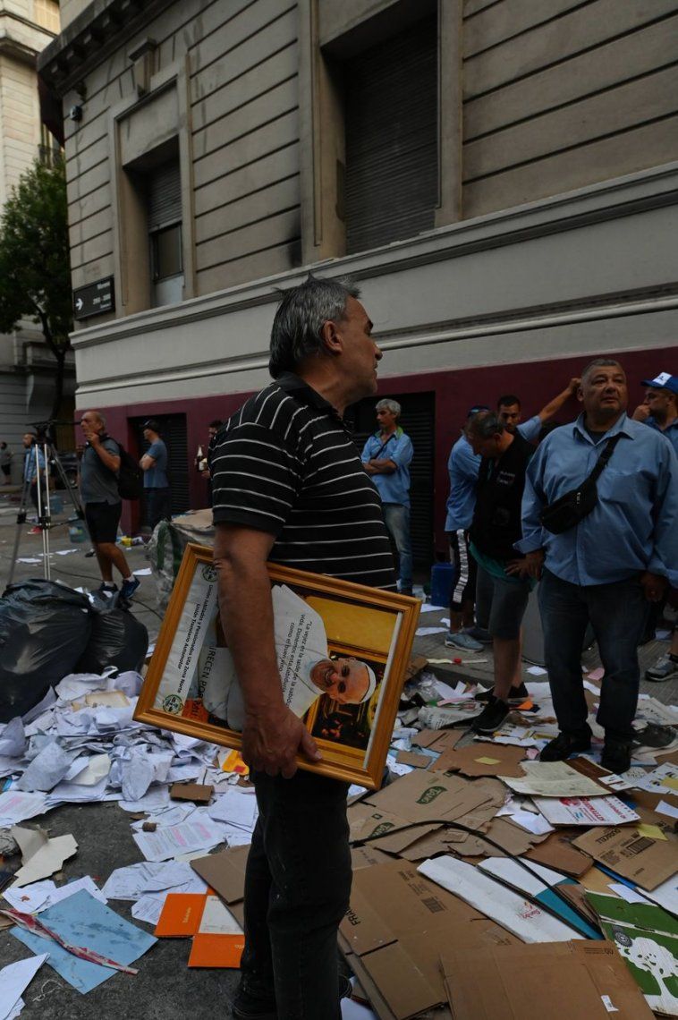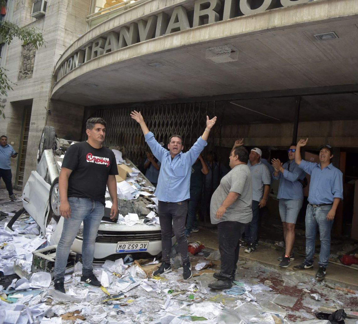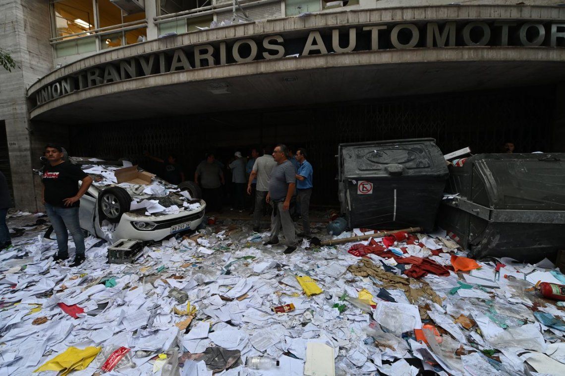 Choferes de la Unión Tranviarios Automotor (UTA) que trabajan para la empresa Dota, que se encuentra de paro, y que son opositores al secretario general del sindicato, Roberto Fernández, destrozaron y tomaron el edificio ubicado en Moreno 2969